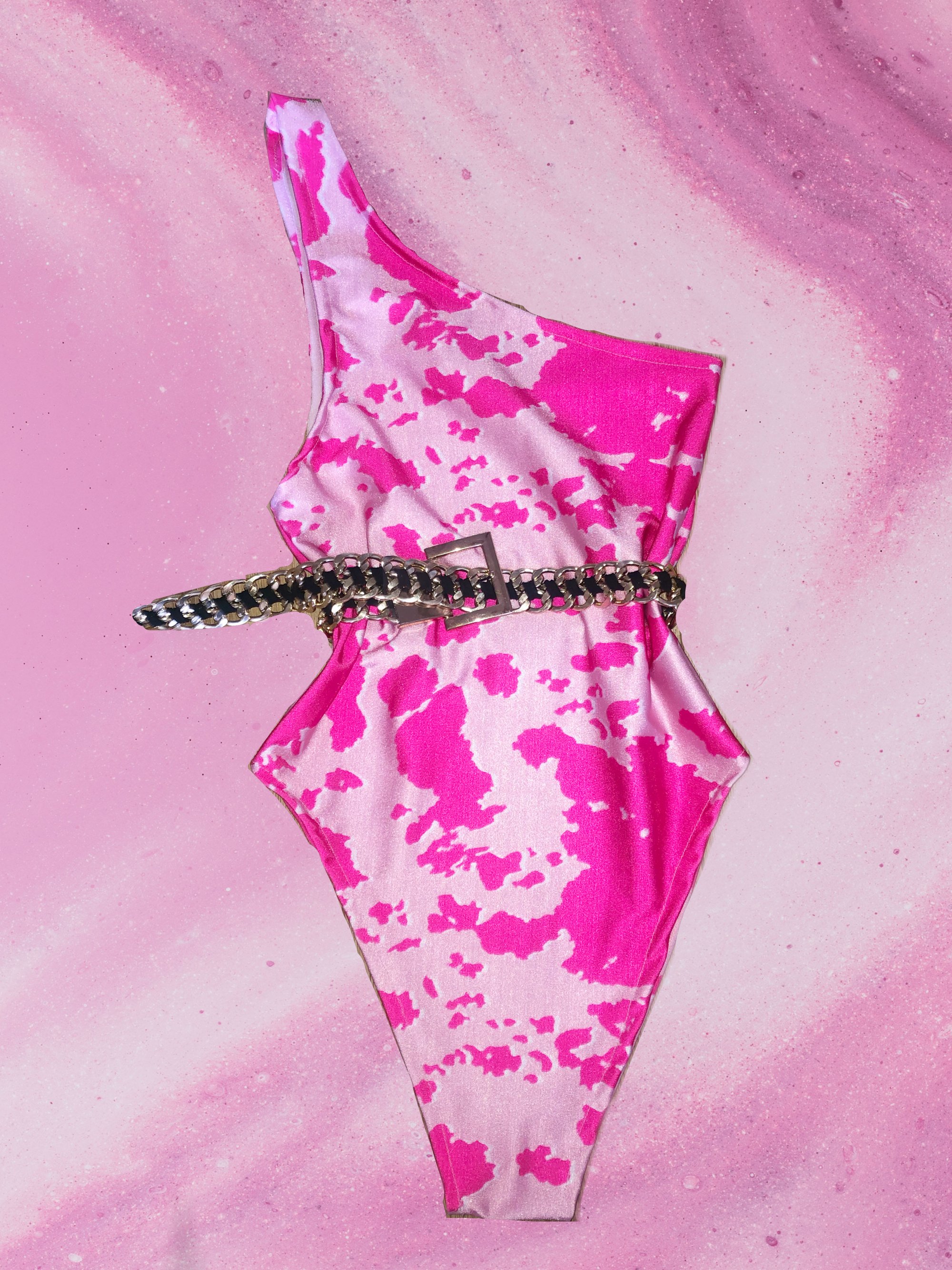 Premium pink army/cow print swimsuit. Can be worn as bodysuit.
